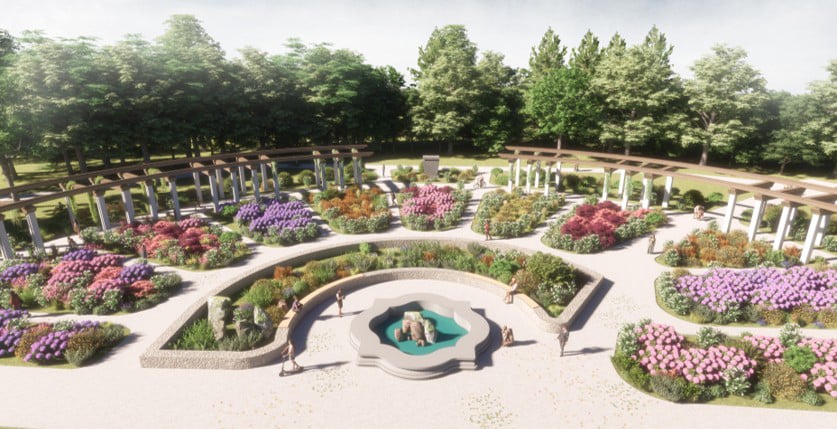 În zona obeliscului Sweteney Weg este propusă o grădină tematică. Aceasta trebuie să „inspire reculegere, liniște și apropiere faţă de trecut și natură”. „Grădina tematică memorială de formă circulară este concepută ca un spaţiu contemplativ, memorial şi biofilic, organizat în jurul obeliscului «Sweteney Weg», simbol al memoriei, al verticalităţii spirituale și al legăturii cu trecutul. Designul propus urmărește integrarea elementelor naturale (mulci, plante perene) cu cele simbolice (pași de pisică, trasee concentrice), pentru a crea un spaţiu de tihnă, reflecţie și conexiune cu natura”, se arată în documentație.