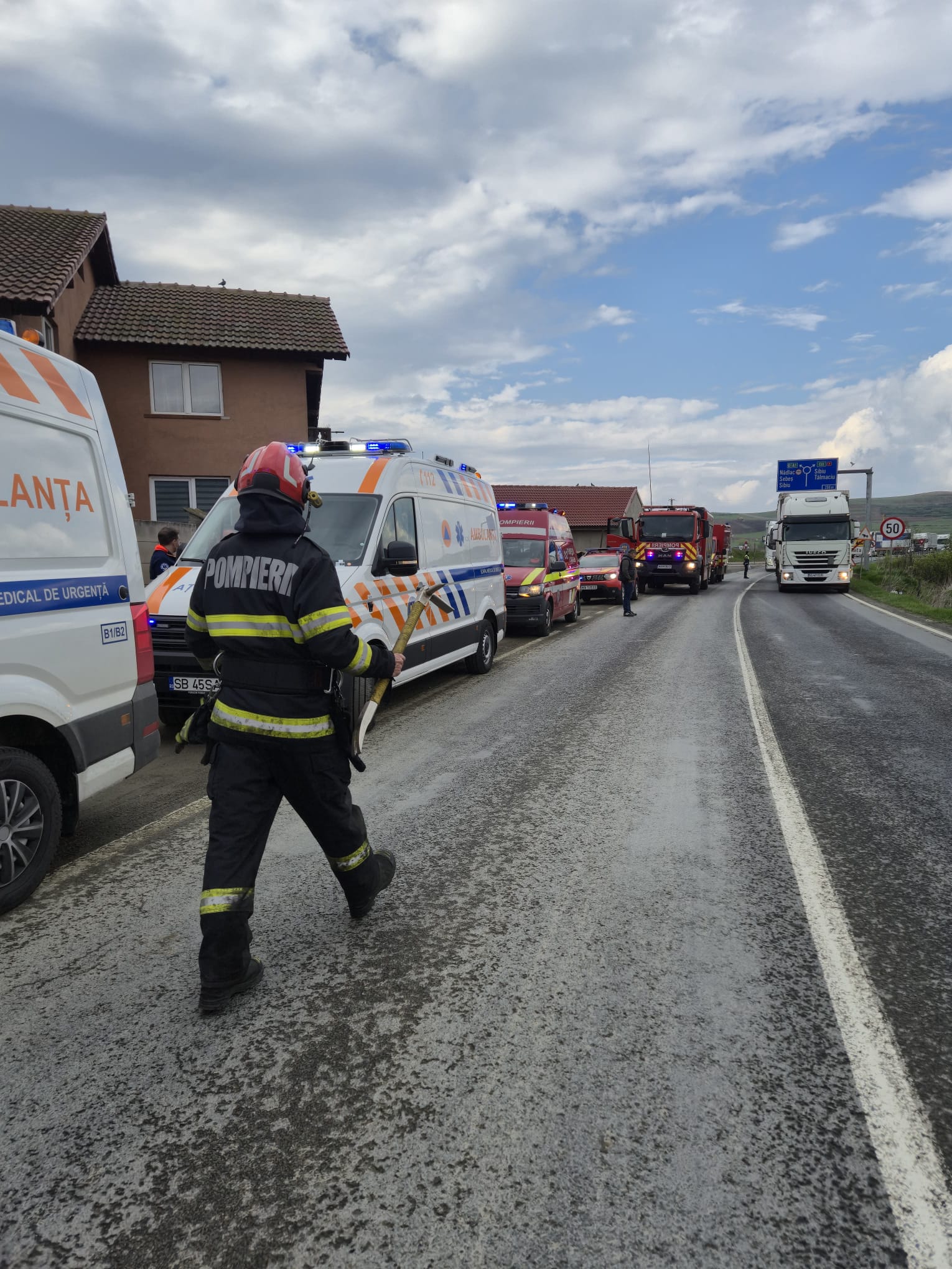 La fața locului sunt mobilizate două echipaje SMURD dintre care unul cu medic, o autospecială de transport personal și victime multiple, o autospecială de stingere și două echipaje SAJ.
