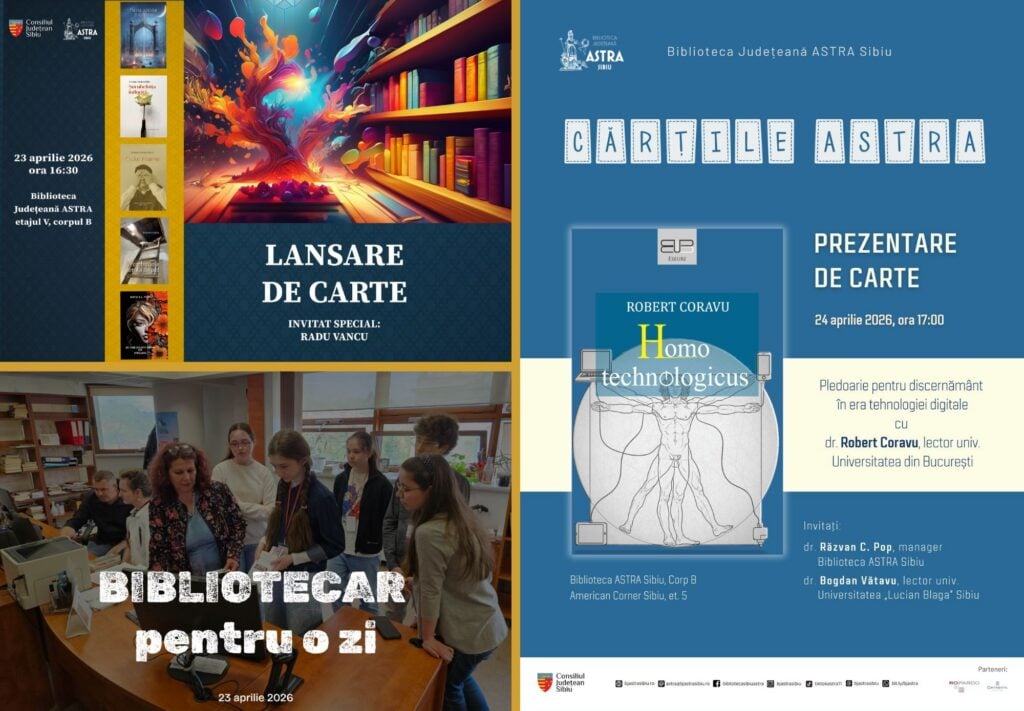 Biblioteca Județeană ASTRA Sibiu marchează Ziua Bibliotecarului din România și Ziua Mondială a Cărții și a Drepturilor de Autor printr-o serie de manifestări care oferă o conexiune autentică în lumea bibliotecii, alături de oamenii care o animă. Evenimentele se vor desfășura sub auspiciile Anului cultural ASTRA 165, anunță reprezentanții instituției de cultură.