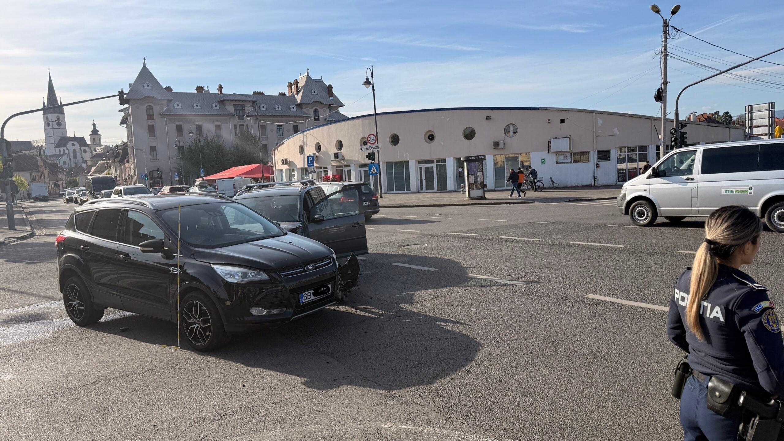 Traficul este îngreunat vineri dimineață în zona Pieței Cibin, în urma unui accident de circulație.