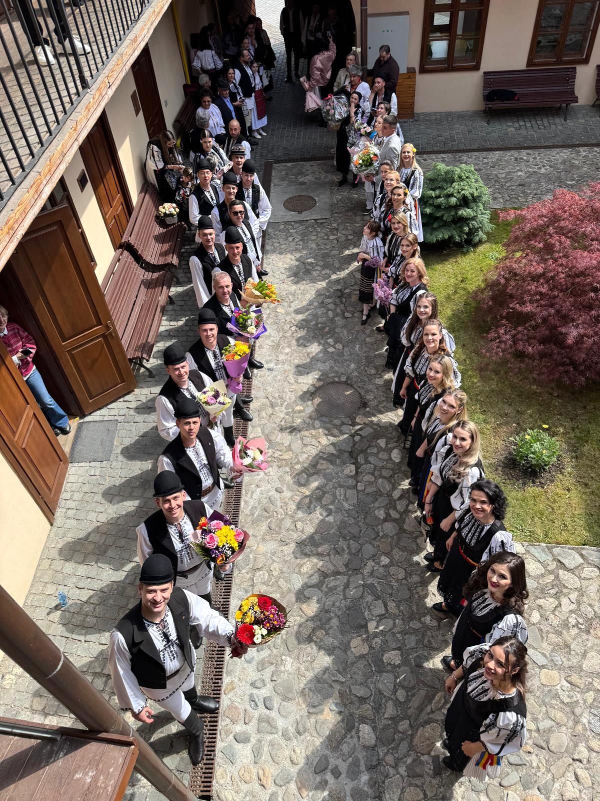Un detaliu care a dat o notă aparte momentului a fost alegerea mirilor de a purta costume populare, gest urmat și de invitați. Atmosfera a fost completată de o jiană încinsă după ceremonie, transformând cununia civilă într-o adevărată sărbătoare a tradiției.