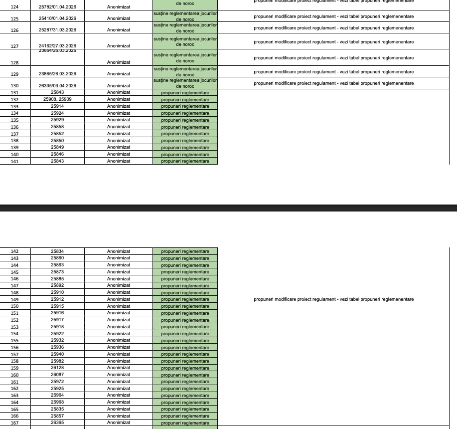173 este numărul punctelor de vedere transmise la acest proiect. 95 dintre acestea au fost împotriva reglementărilor. În acest caz, însă, majoritatea mesajelor transmise de cei care s-au arătat pentru interzicerea sălilor de jocuri de noroc nu mai par a fi concertate.