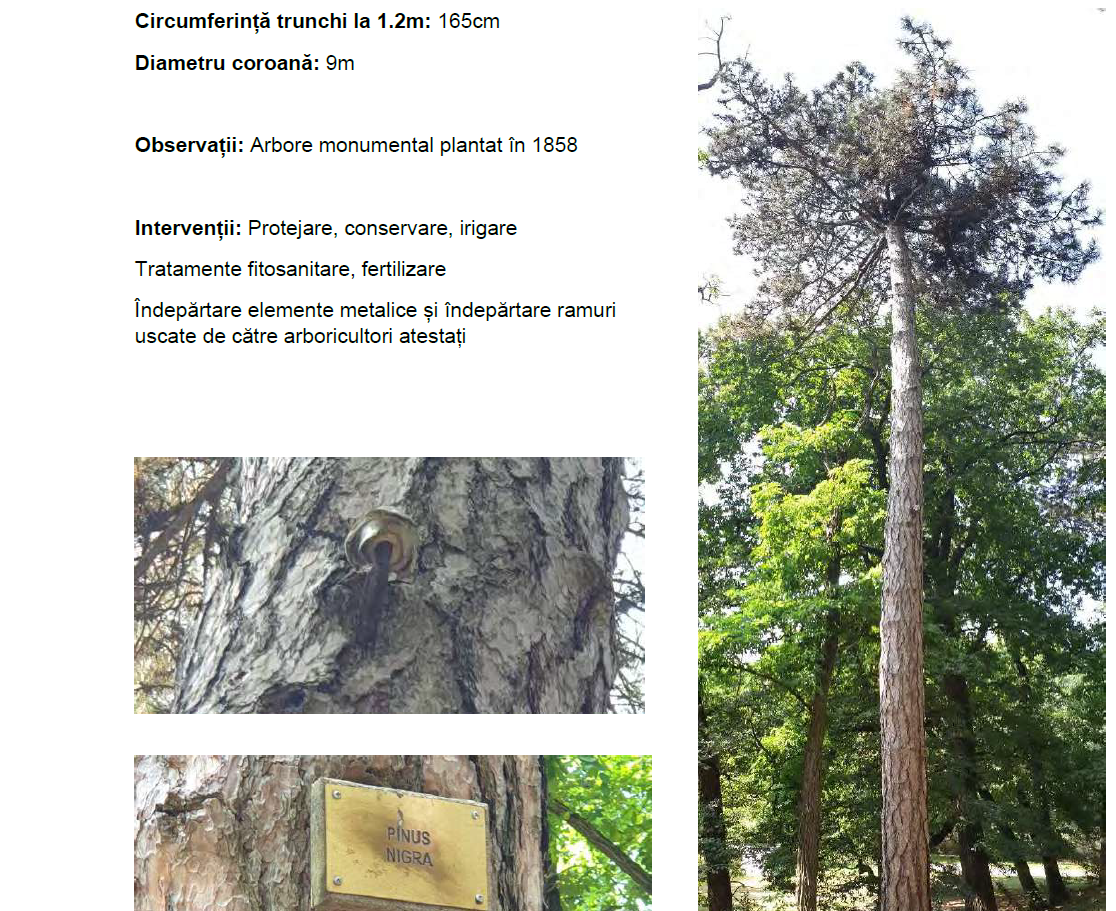 „Arborii monumentali sunt prezențe importante în parc prin caracterul istoric, înălțimile considerabile, volumul mare de masă verde, ca repere vizuale, dar și prin cantitatea de oxigen eliberată, a cantităților de pulberi și noxe captate din atmosfera orașului”, se arată în document.