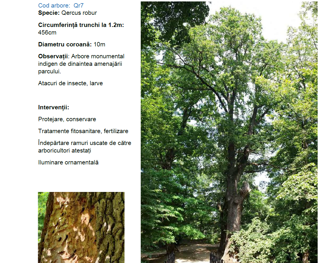 „O parte din arborii monumentali prezintă ramuri rupte și uscate la înălțime, ca urmare a operațiunilor de toaletare neadecvate ori a fenomenelor meteo. Aceste ramuri prezintă risc de accidente și trebuie înlăturate de echipe specializate de arboricultori”, se precizează în studiu.