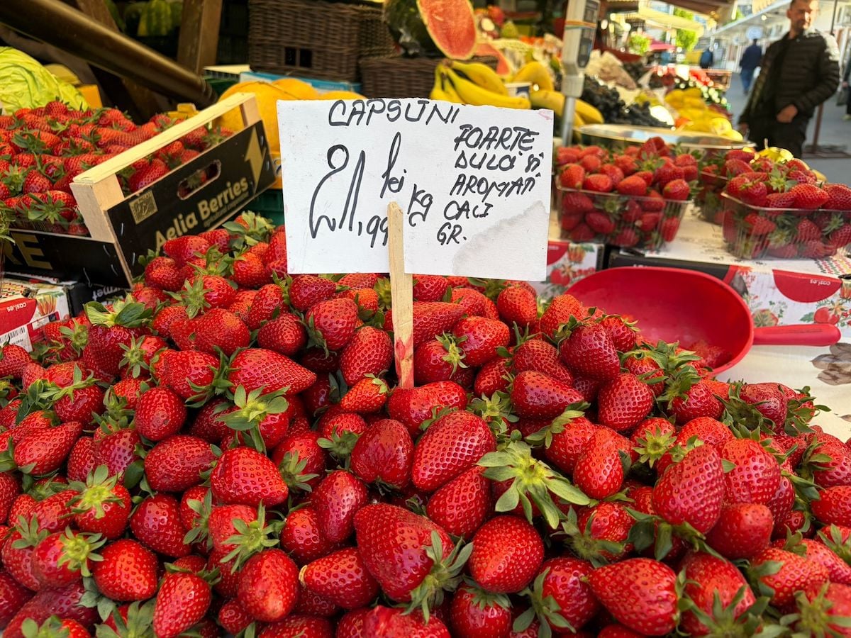 În această perioadă au apărut în piață și căpșunile. Sunt din Grecia și le putem cumpăra în două variante. Prețul unui kilogram este de 22 de lei, dar putem cumpăra și la caserolă cu 15 lei.