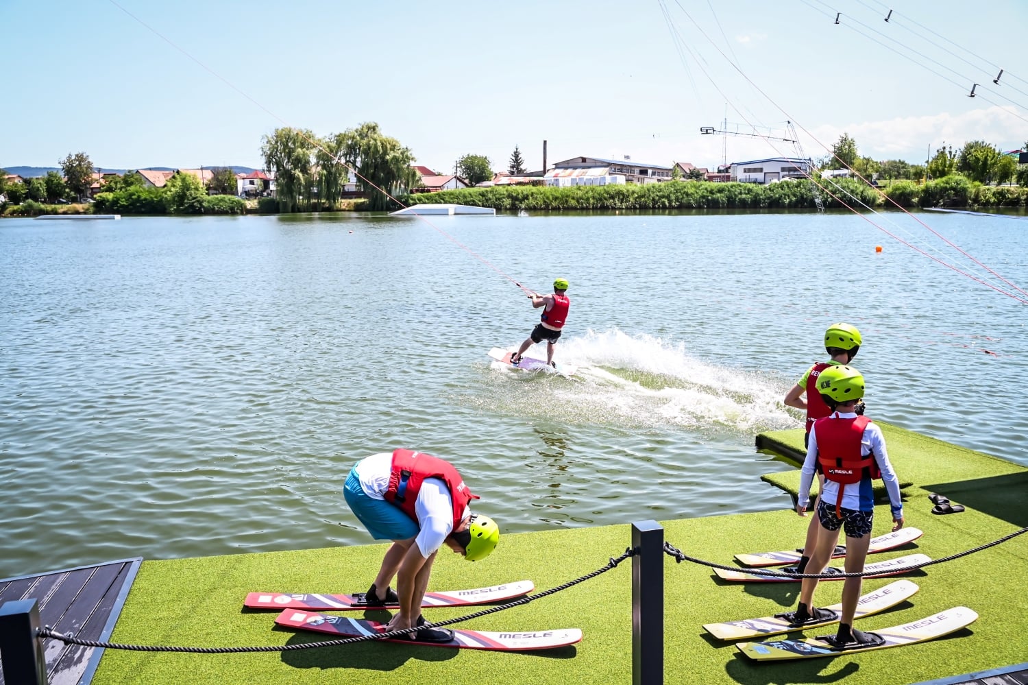 - Practicând sporturi nautice: schi nautic, wakeboarding, caiac și SUP. Instalația pe cablu poate fi utilizată atât de începători, cât și avansați. Echipamentele pot fi închiriate de la centrul din Complex, vestele de salvare și căștile de protecție fiind incluse în tarif. Chiar dacă, deocamdată apa este rece, costumul de neopren face posibilă practicarea acestor sporturi.