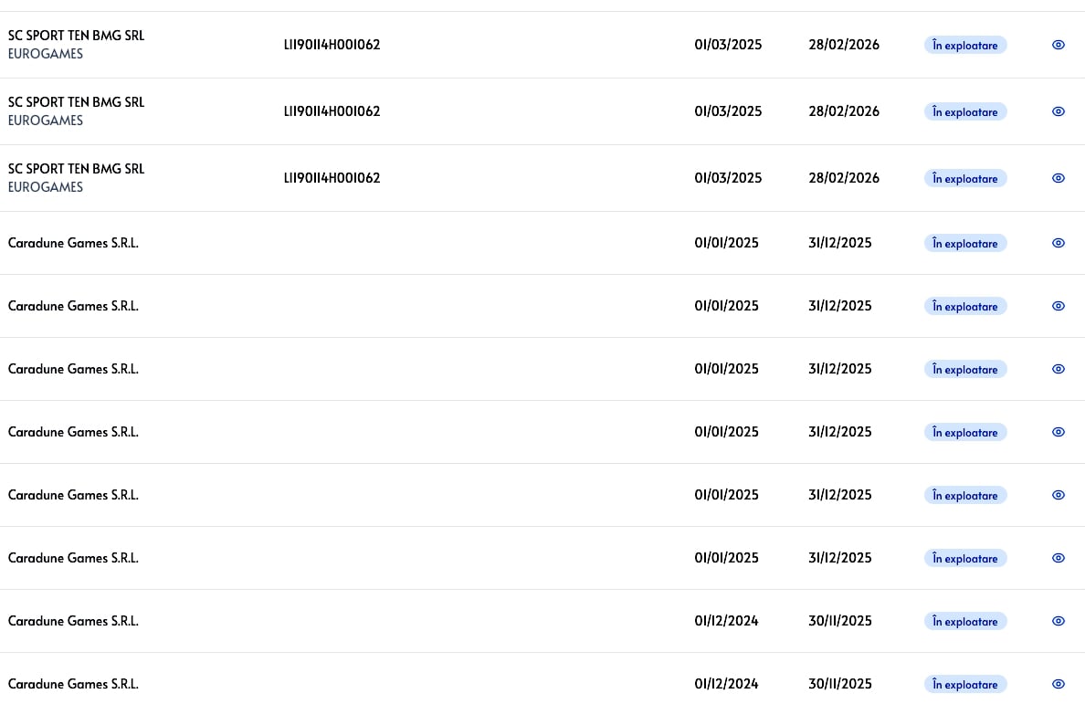 Din aceleași date, rezultă că alte aproximativ 20 de aparate aflate în exploatarea celor de la Caradune Games și Sport Ten BMG funcționează deși autorizațiile le-au expirat din din februarie și, respectiv, martie 2026.