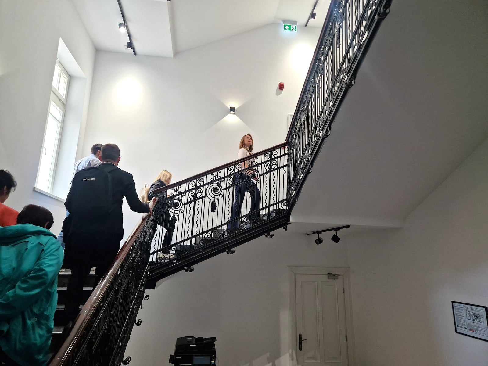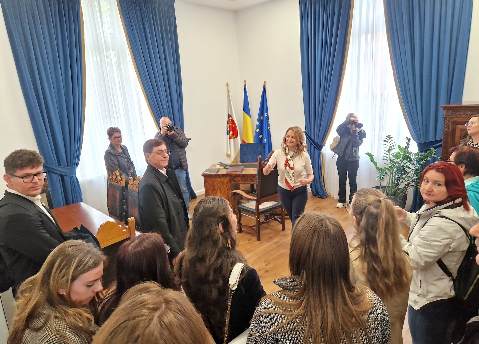 Turul a început de la parterul unde se află Centrul de informații pentru cetățeni, birouri, dar și o încăpere destinată comunității, care este invitată să organizeze aici expoziții sau diferite alte evenimente.