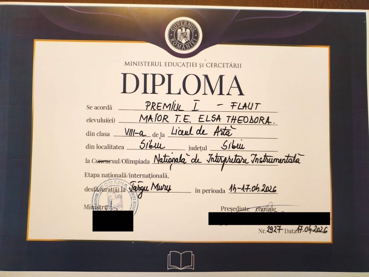 De asemenea, prof. Mona Dăncăneț, directoarea Liceului de Artă spune că reușita fetei este și rodul muncii depuse de profesoara de flaut și de corepetitor.