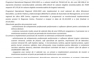 Anunț finalizare proiect - „Eficientizarea activității Calmodent Sibiu SRL prin dezvoltarea unei activități de tehnică dentară”