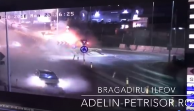 VIDEO | Un șofer beat a zburat printr-un sens giratoriu