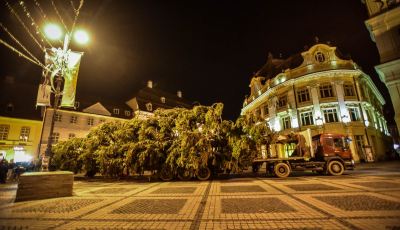 Bradul de Crăciun a ajuns în Piața Mare a Sibiului
