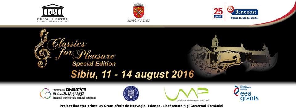 Peste 400 de artişti vor încânta Sibiul la festivalul “Classics for Pleasure” Special EditionÎn perioada 11-14 august, Sibiul devine gazda celei de-a VI-a ediţii a Festivalului Classics for Pleasure–Special Edition şi le dăruieşte iubitorilor de frumos de toate vârstele șase concerte de muzică clasică, un spectacol pentru copii şi o expoziţie de artă -