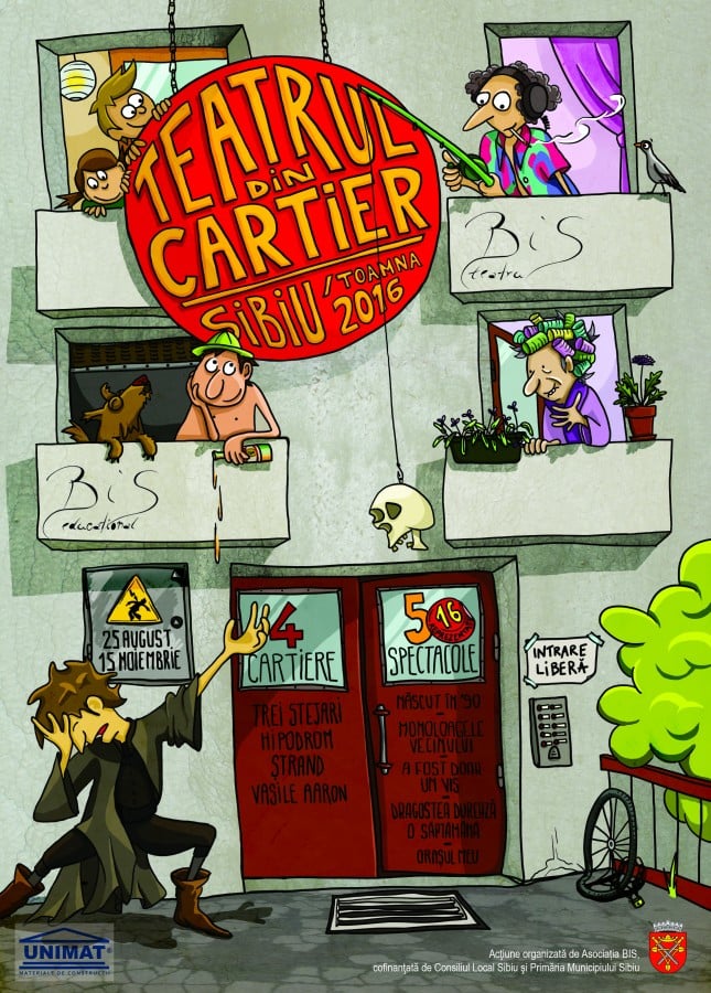 Când oamenii nu ajung la teatru, teatrul vine în cartiere. BIS anunță 16 reprezentații în cartierele Sibiului„Monoloagele vecinului”, „Născut în 90”, „Orașul meu”, „A fost doar un vis” și „Dragostea durează o săptămână” sunt cele cinci spectacole pe care Asociația Culturală BIS,prin programul„BIS Educational”, le va prezenta în cartierele Sibiului, în cadrul celei de-a doua stagiuni -