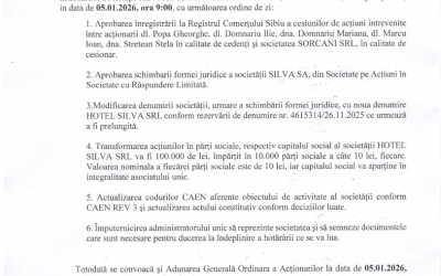 Convocarea adunării generale ordinare și extraordinare a asociaților nr. 1/26.11.2025