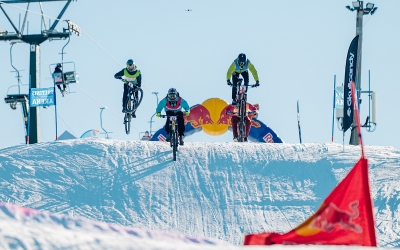 Două fete şi trei băieţi, pe podium la un concurs inedit de biciclete mountain bike pe zăpadă, la Păltiniș