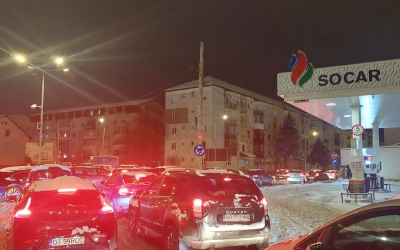 Ninsoare abundentă la Sibiu. Poliția: conduceți cu prudență, imaginați-vă că aveți un tort pe bancheta din spate. Meteorologii spun că va mai ninge aproximativ două ore