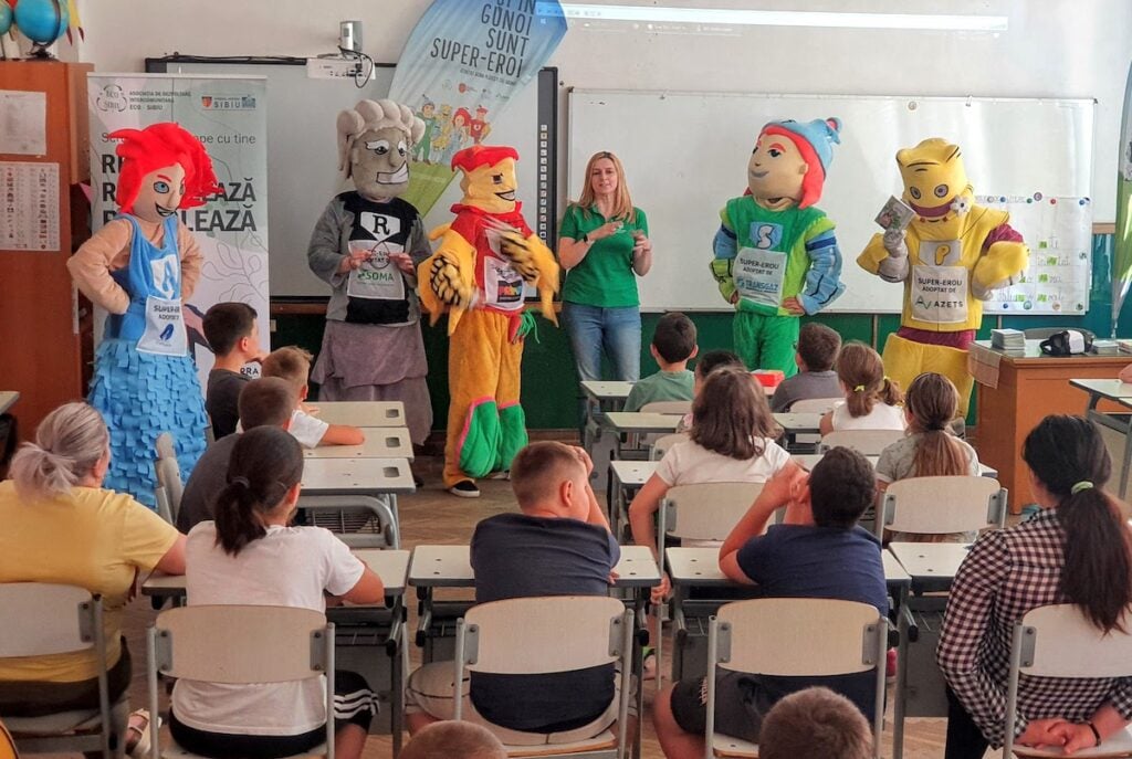 Super-eroii reciclării sunt cinci la număr. Care este preferatul tău?Tanti Rezi, Miticlă, PETrică, Mărie-Hârtie și BIOrel sunt cei cinci super-eroi ai colectării selective la Sibiu. Sunt adesea prezenți printre noi, pe stradă sau la diferite evenimente. Pentru a ajuta sibienii să rețină simplele reguli ale colectării selective, a fost -