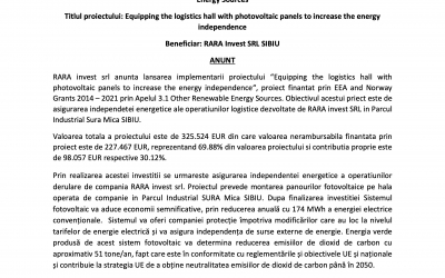 Proiect finantat prin EEA and Norway Grants 2014 – 2021 prin apelul 3.1 Call 3.1 Other Renewable Energy Sources