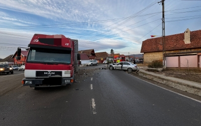 Accident la Brateiu: a ratat curba și a intrat într-un tir. Un bărbat de 70 de ani a ajuns la spital