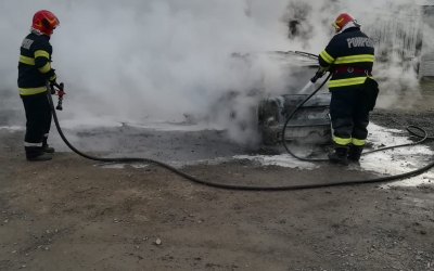 O mașină a luat foc în Mediaș din cauza unui scurtcircuit electric