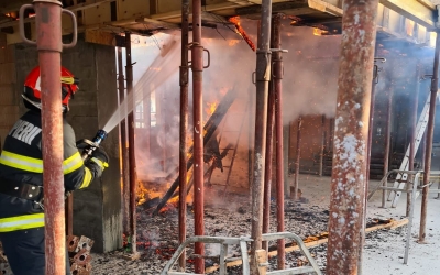 Incendiu pe șantierul unui bloc de pe str. Doamna Stanca, Șelimbăr: au ars cofrajele