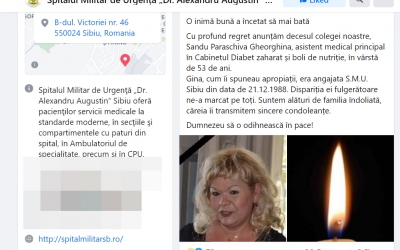 Doliu la Spitalul Militar Sibiu: A decedat o asistentă în vârstă de 53 de ani