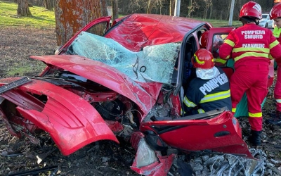 A dărâmat un stâlp de beton după ce a pierdut controlul direcției. Tânărul șofer a fost scos conștient din mașină , dar cu multiple traumatisme