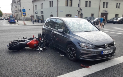 Accident între o mașină și un motor, pe Doamna Stanca. Șoferița nu a acordat prioritate, iar motociclistul nu avea permis
