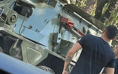 VIDEO-Un manelist la volanul unui blindat istoric a lovit o mașină în centrul orașului Rm. Vâlcea