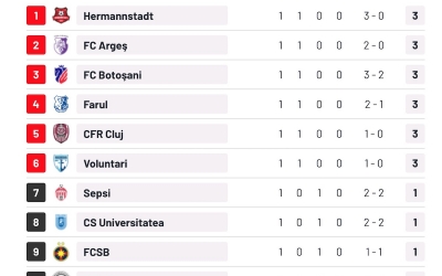 Hermannstadt, pe primul loc după prima etapă din Liga 1. Pelici, după întâlnirea cu sibienii: ”O înfrângere rușinoasă, suntem cu toții vinovați”