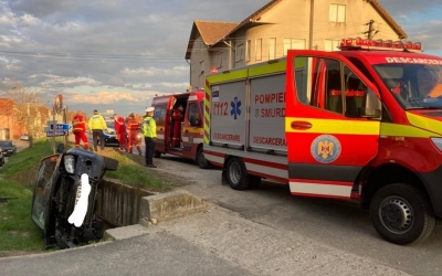 Șofer beat transportat la spital, după ce s-a răsturnat cu mașina, în Cristian