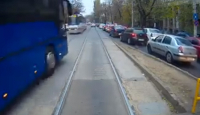 Video| Autocar al Jandarmeriei, filmat în timp ce depăşeşte cu viteză pe linia de tramvai