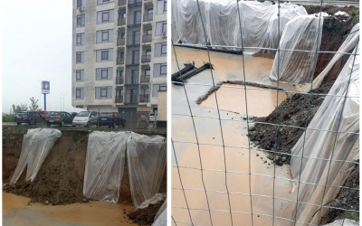 Un excavator sapă de trei zile într-o zonă cu risc de alunecări. Nimeni nu l-a putut opri
