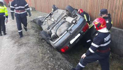 Mașină răsturnată din cauza vitezei, pe DN14. Două persoane sunt rănite