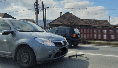 Un biciclist băut a fost lovit de o mașină după ce a traversat prin loc nepermis