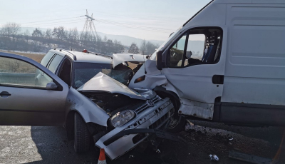 Trei persoane au fost rănite după ce un microbuz a intrat pe contrasens