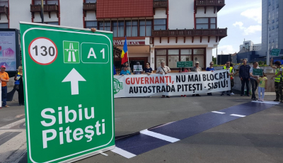 „Sibiu-Argeș-România-Europa”. Protest în centrul orașului pentru construcția Autostrăzii Sibiu-Pitești