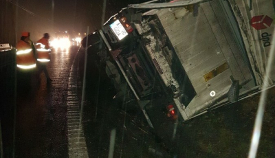 TIR răsturnat peste o mașină, pe DN 7. Valea Oltului este blocată