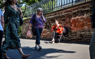 VIDEO-Cine este chitarista care cântă zi de zi în fața teatrului. „La 37 de ani m-am decis să mă reapuc de muzică”