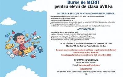 Se depun dosarele pentru opt burse de merit oferite de o biserică elevilor de liceu și clasa a VIII-a din Mediaș