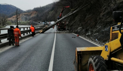 Trafic blocat pe DN 7. Se toaletează arborii la intrarea în județ