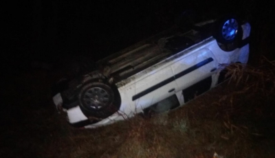 FOTO – Mașină răsturnată din cauza vitezei pe drumul Sibiu-Agnita