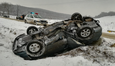 Mașină răsturnată pe DN 1, la Hula Bradului