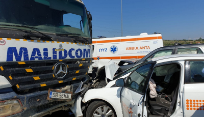 Accident cu patru răniți, la intrarea pe autostradă dinspre Ștefan cel Mare