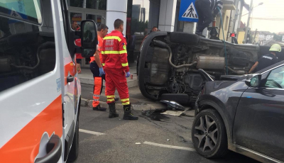 ACTUALIZARE. Automobil răsturnat în sensul giratoriu de la Ibis. Două persoane au fost rănite