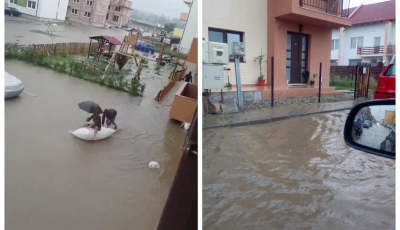 VIDEO Cartierul Arhitecților: au ieșit cu pluta la plimbare pe străzile inundate
