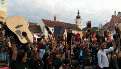 Foto/video. Întâlnire cu răsunet în Piața Mică. Peste 300 de chitariști au cântat deodată