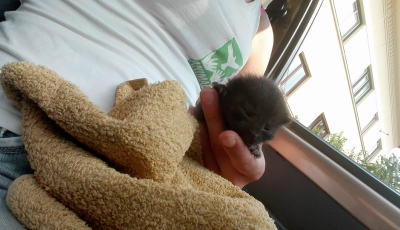 Foto |Un pui de pisică, salvat dintr-o conductă de Animal Life, cu sprijinul E. On Gaz
