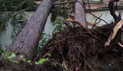 FOTO – Copaci prăbușiți peste două case, în Roșia